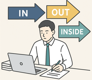 仕事を進めるうえで「イン(業務の流入)」「アウト(業務成果の返却)」「インサイド(業務処理のプロセス)」の3つを意識することが大切です。この視点を持つことで、不要な業務を減らし、成果の質を高めることができます。